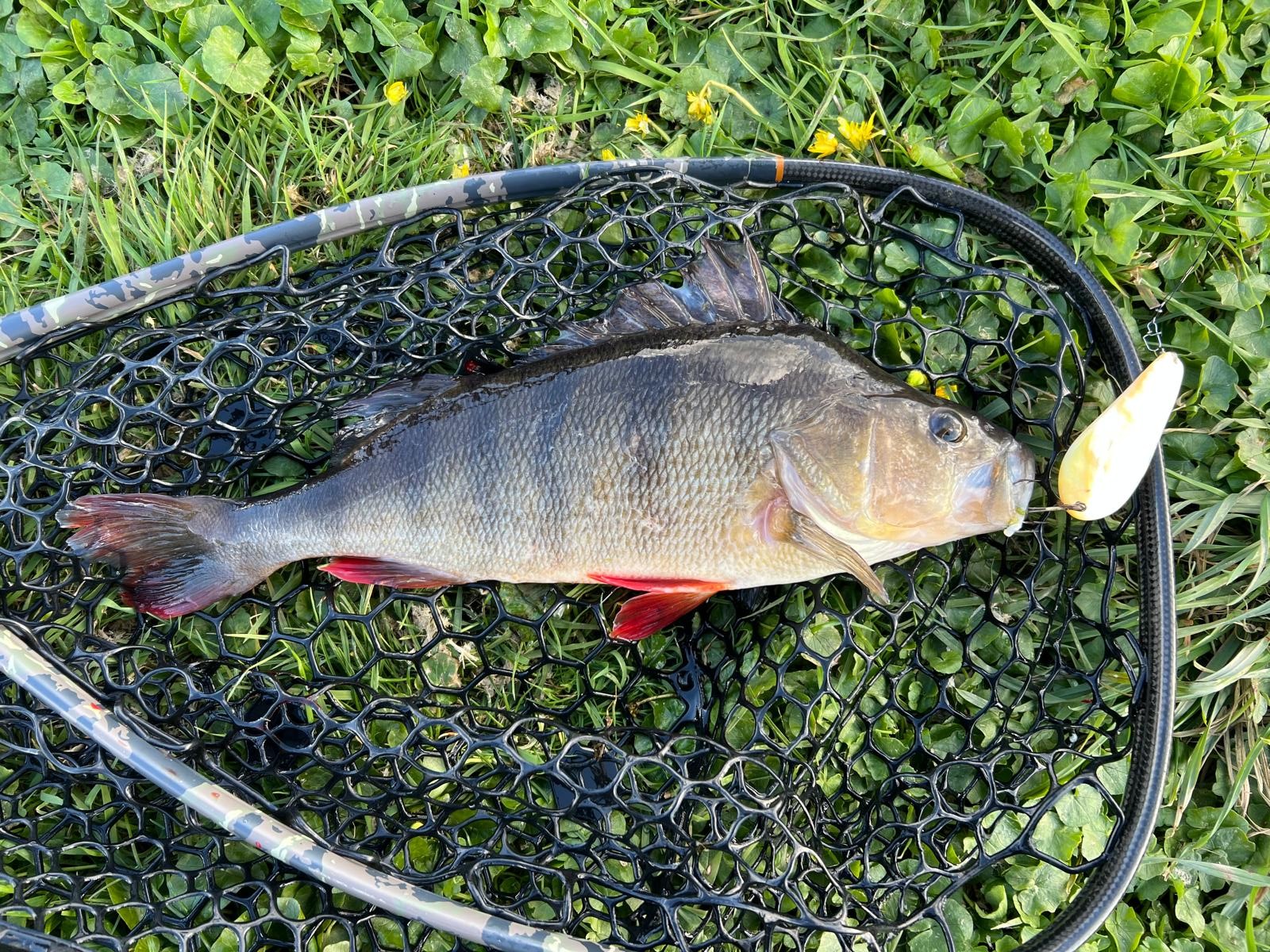 Onze secretaris heeft tijdens het vissen na de algemene ledenvergadering nog even gevist en een zeer mooie baars gevangen in ons polder water.